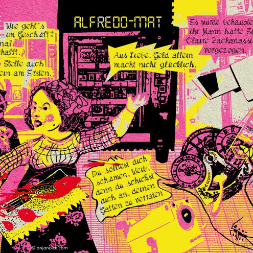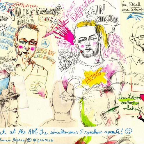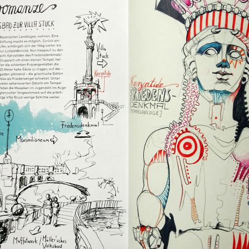 Anja Nolte, Kindheit an Rott und Isar, lebt und arbeitet als freischaffende Künstlerin und Illustratorin in Berlin. Ob Illustrationen für DIE ZEIT, Lufthansa oder Deutsche Bahn, Gestaltung der "Café Latte New York Edition“ für emmi, bis hin zur Animation des Kinotrailers Goldener Schnitt (Museum für Kommunikation Berlin). Ob bloggende Livezeichnerin für den Bayerischen Rundfunk auf dem Wiener Opernball, als Porträtzeichnerin für Microsoft bei den Cannes Lions oder für Adobe als Speaker on stage im Münchner Muffatwerk, Anja Nolte sucht und geht leidenschaftlich gerne immer wieder neue, kreative Wege. Ihre Arbeiten finden sich regelmäßig in BEST-OF Compilations, etwa in Lürzer’s „200 Best Illustrators worldwide 2016/17“, die Stiftung Buchkunst würdigte 2015 ihre Illustration des Gedichtbandes „Im Verborgenen“ von Konstantinos Kaváfis als „eines der 25 schönsten Bücher Deutschlands“. Aktuell ist das erste Buch von ihr erscheinen in dem sie auch Autorin ist: Urban Sketching München (Christophorus Verlag). Die Bayerische Metropole aus Künstlersicht, ein Reiseführer und Erzählband mit über 240 Zeichnungen der Autorin, sowie vielen Tipps rund ums kreative Gestalten. Noltes zweite Leidenschaft ist Musik: Sie singt, spielt Jazzgitarre und erstellt Soundcollagen, die oft Eingang in ihre Arbeit finden.