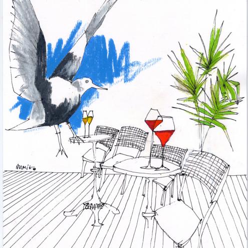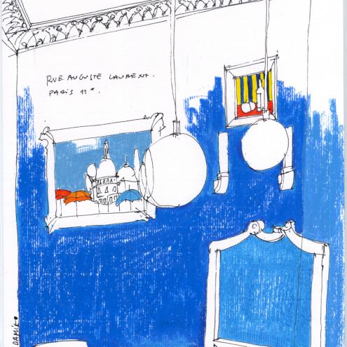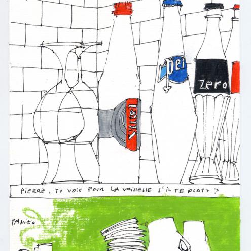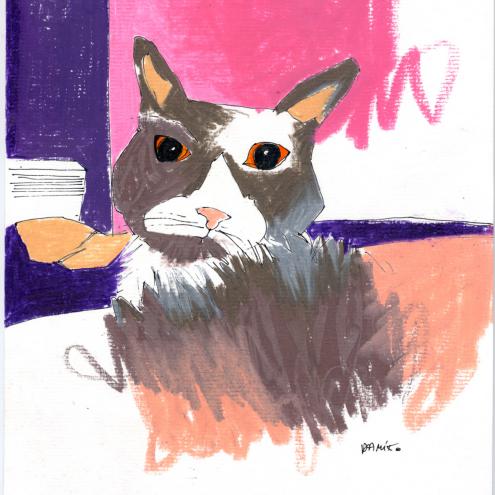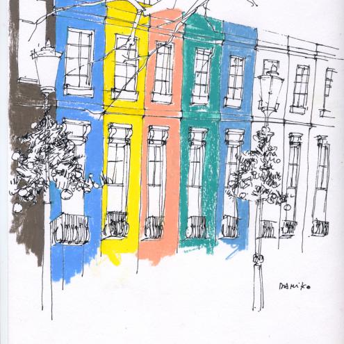 Damiko zeichnet meist Szenen des Lebens in situ. Weit entfernt von technischer Perfektion zeugen seine Arbeiten von besonderer Beobachtungsgabe. Spontane Tusche- und Bleistiftlinien charakterisieren seine Bilder. Vorentwürfe erübrigen sich und nur sehr vereinzelt heischt ein fertiges Bild nach Änderungen.