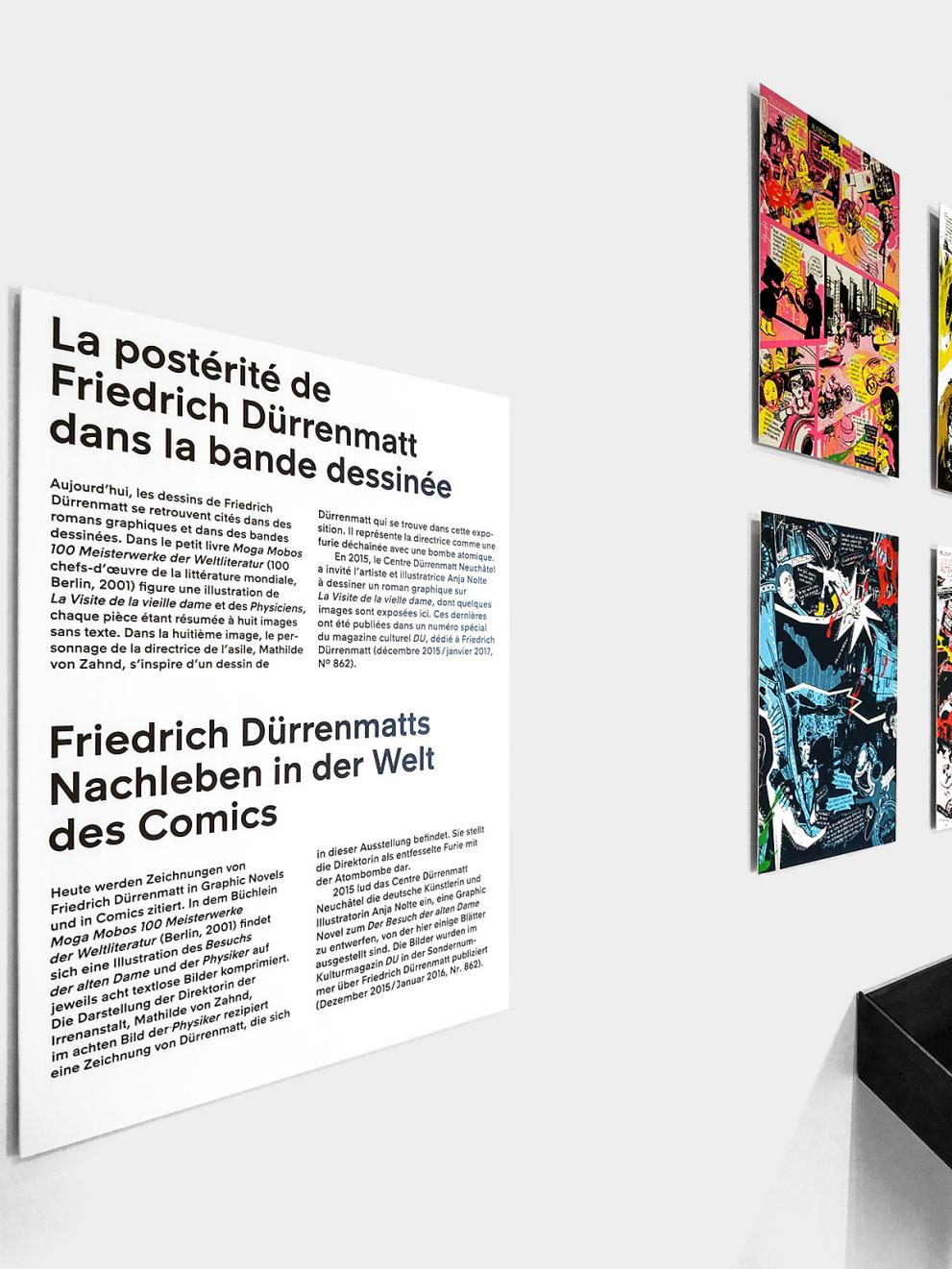 In der Ausstellung 'Friedrich Dürrenmatt - Karikaturen' im Centre Dürrenmatt Neuchâtel, Schweiz werden auch Arbeiten aus Anja Noltes Graphic Novel ‚Der Besuch der alten Dame‘ (2015) gezeigt. Die Ausstellung wurde am 15. Januar eröffnet und ist bis 15. Mail 2022 zu sehen.