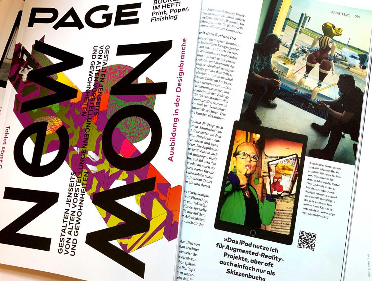 "Mit dem Adobe Aero Projekt „Krodita“ hat Anja Nolte eine 3D-Kunstfigur geschaffen, die vom User visuell in immer neue Kontexte gesetzt werden kann und sich spielerisch, politisch oder auch künstlerisch einsetzen lässt."