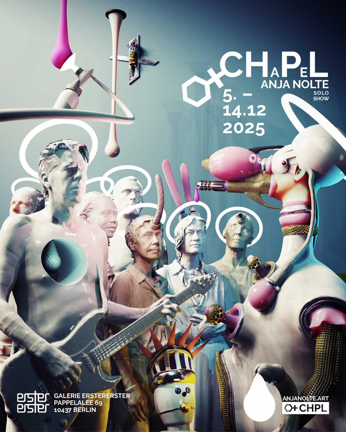 Noltes Ausstellung THE CHAPEL spiegelt den Werteverfall einer Gesellschaft, in der Lüge und Machtmissbrauch alltäglich sind. Zeichnungen, Plastiken und multimediale Installationen laden dazu ein, die Götzen unserer Zeit zu hinterfragen. Zwischen Provokation und Ritual entsteht Raum für Reflexion und Erkenntnis.