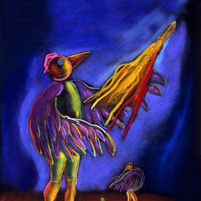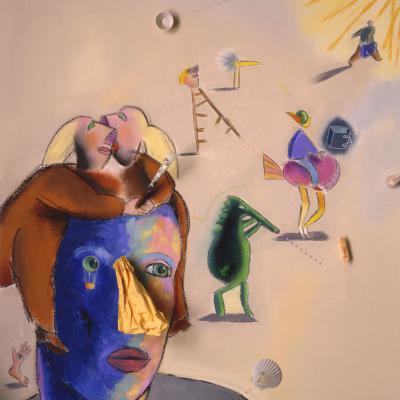 Parallel zu ihren Auftragsarbeiten entstanden freie Zeichnungen in sparsamen Strichen, oft mit kleinen Tupfern Gold, von wundersamen fröhlichen Gestalten, deren Charakteristika in ihren späteren Skulpturen wieder auftauchten.