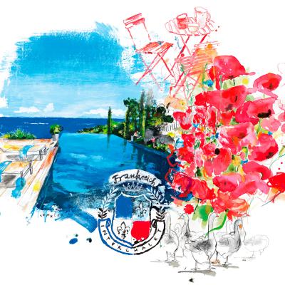 Stefano Riboli illustrierte - angelehnt an den Stil der typischen Reiseposter der 1960er Jahre - den Hintergrund für die Anzeigen-Kampagne des neuen VW California Origins in Frankreich. Agentur: Grabarz & Partner