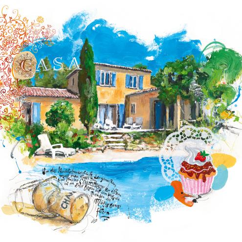Bernhard Kunkler illustrierte wieder die Cover der Kataloge von Interchalet, dem bedeutendsten deutschen Unternehmen dieser Branche, das Ferienwohnungen und Ferienhäuser in verschiedenen europäischen Ländern vermittelt.